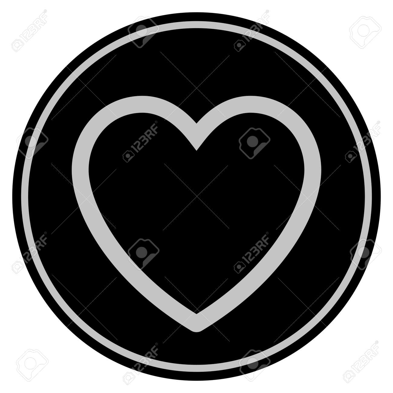 Vettoriale - Icona Del Cuore Nero Moneta Amore. Lo Stile Vettoriale è Un Simbolo Di Moneta Piatta Con Colori Nero E Grigio Chiaro. Image 93046097.